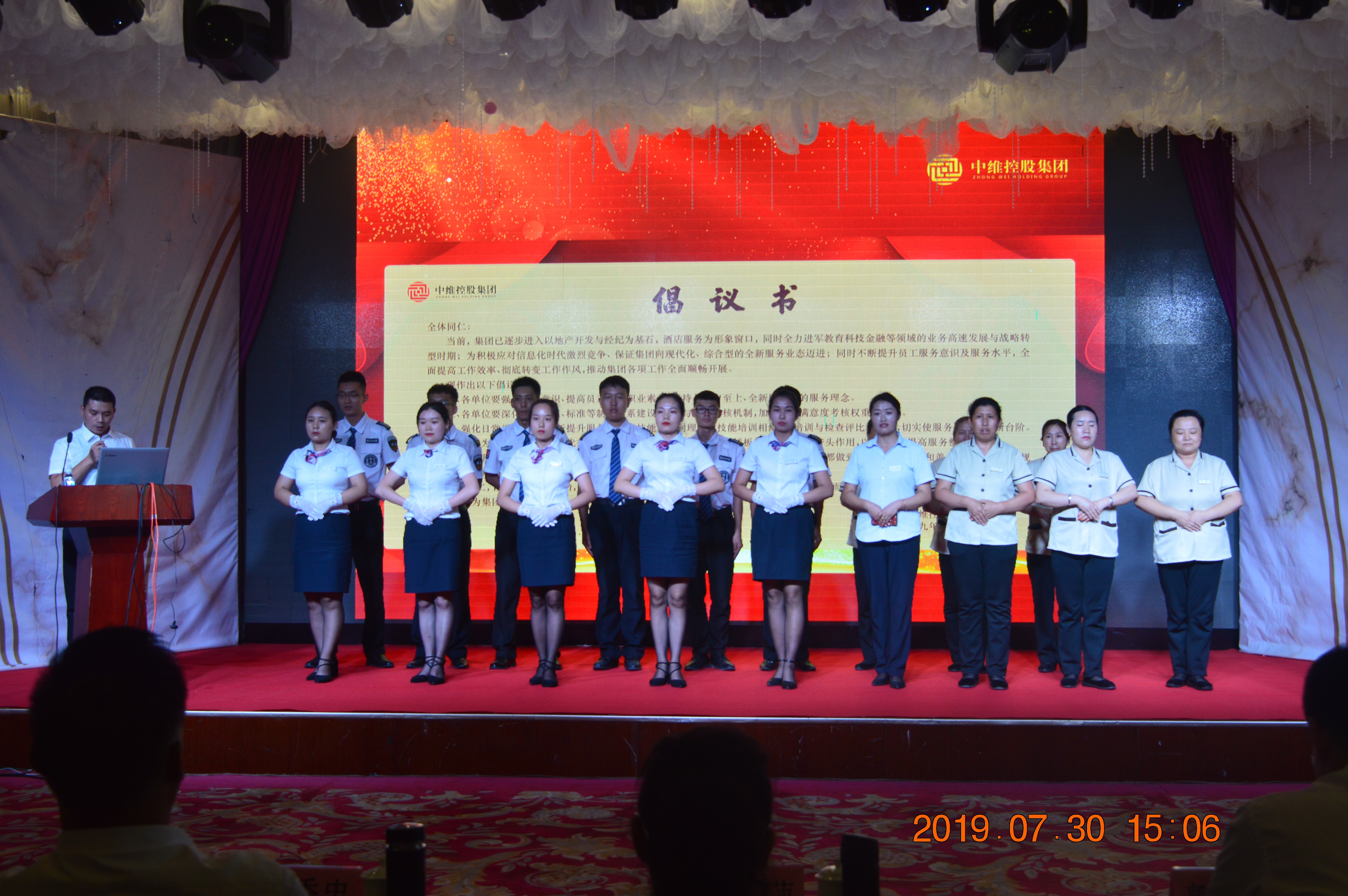 為提升員工的服務(wù)意識(shí)和服務(wù)水平,促進(jìn)企業(yè)的整體發(fā)展,2019年7月30日,中維控股集團(tuán)全體員工在星雅名都酒店六層西會(huì)議廳舉行“提升服務(wù)動(dòng)員大會(huì)”,董事長郭秀忠,副董事長王文萍、郭雅維,總裁郭雅磊等領(lǐng)導(dǎo)出席會(huì)議。本次會(huì)議的主題為“提高服務(wù)意識(shí),提升服務(wù)水平;提高工作效率,轉(zhuǎn)變工作作風(fēng);推動(dòng)下半年工作全面開展”。