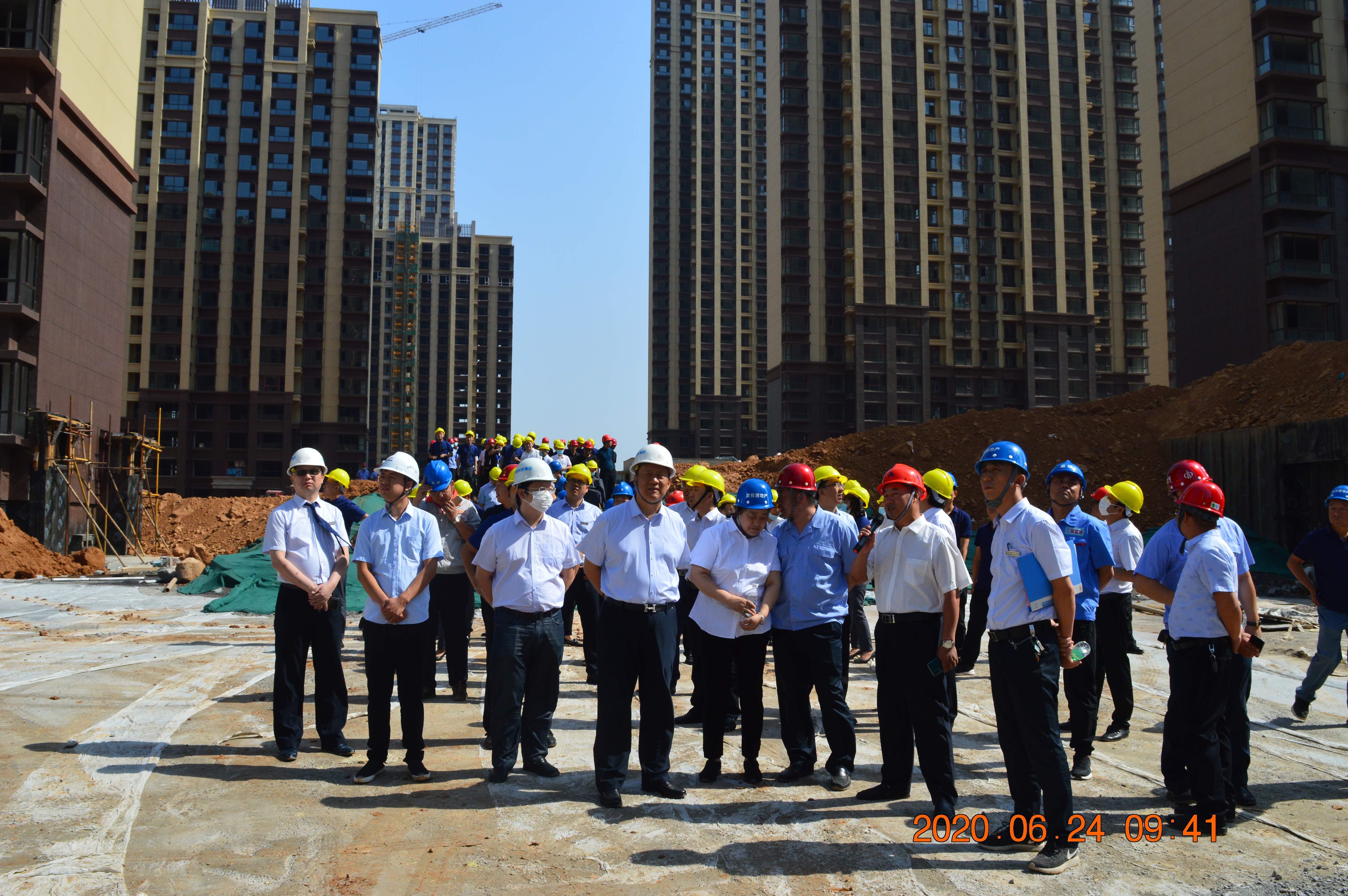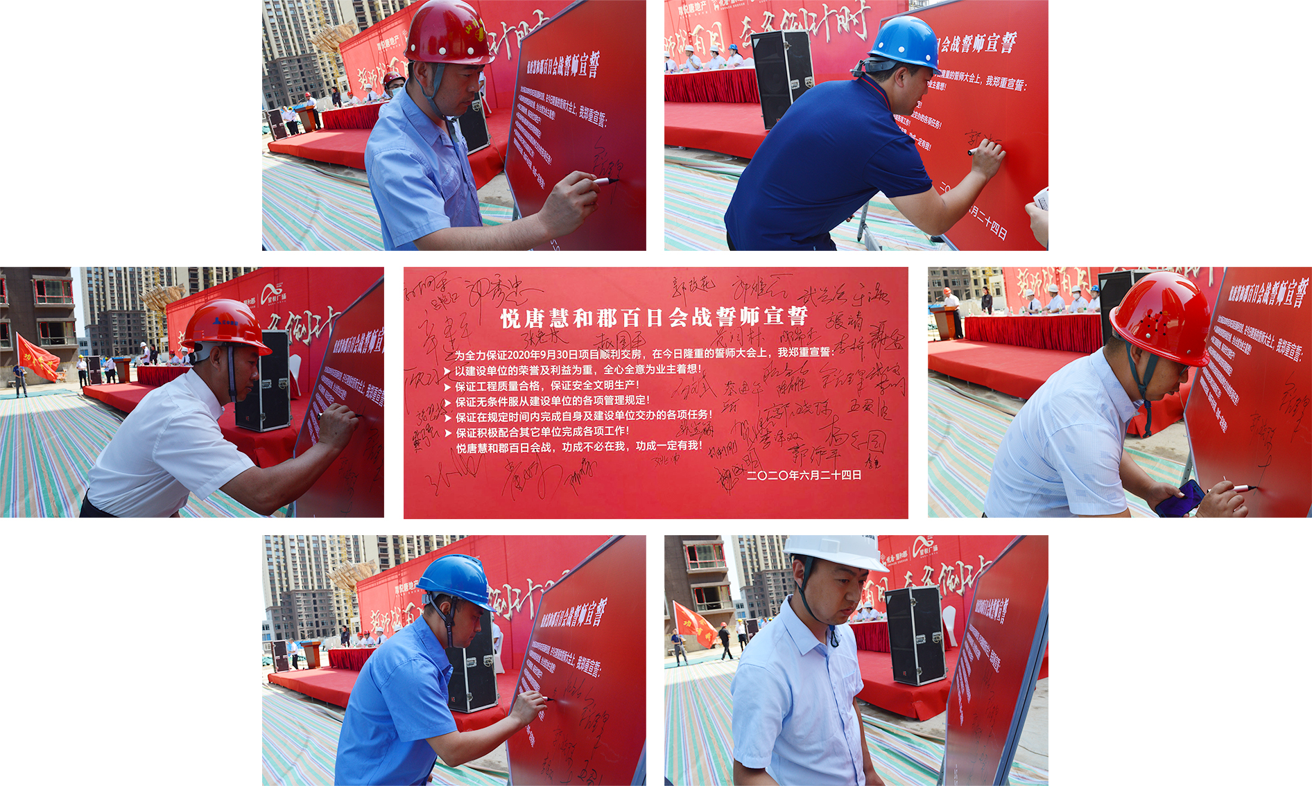 誓師戰(zhàn)百日,交房倒計時!為全力保證項目交房任務(wù)圓滿完成,嚴格兌現(xiàn)向廣大業(yè)主的承諾,2020年6月24日上午,山西悅唐房地產(chǎn)開發(fā)有限公司組織進行“施工現(xiàn)場觀摩檢查暨工程百日會戰(zhàn)誓師大會”。中維控股集團董事長郭秀忠先生、總裁郭雅磊先生,悅唐地產(chǎn)執(zhí)行總經(jīng)理郭改花女士、總工程師張強先生,以及項目各總包、監(jiān)理、分包單位負責(zé)人等主要領(lǐng)導(dǎo),中維控股集團、各參建單位員工代表參與本次活動。