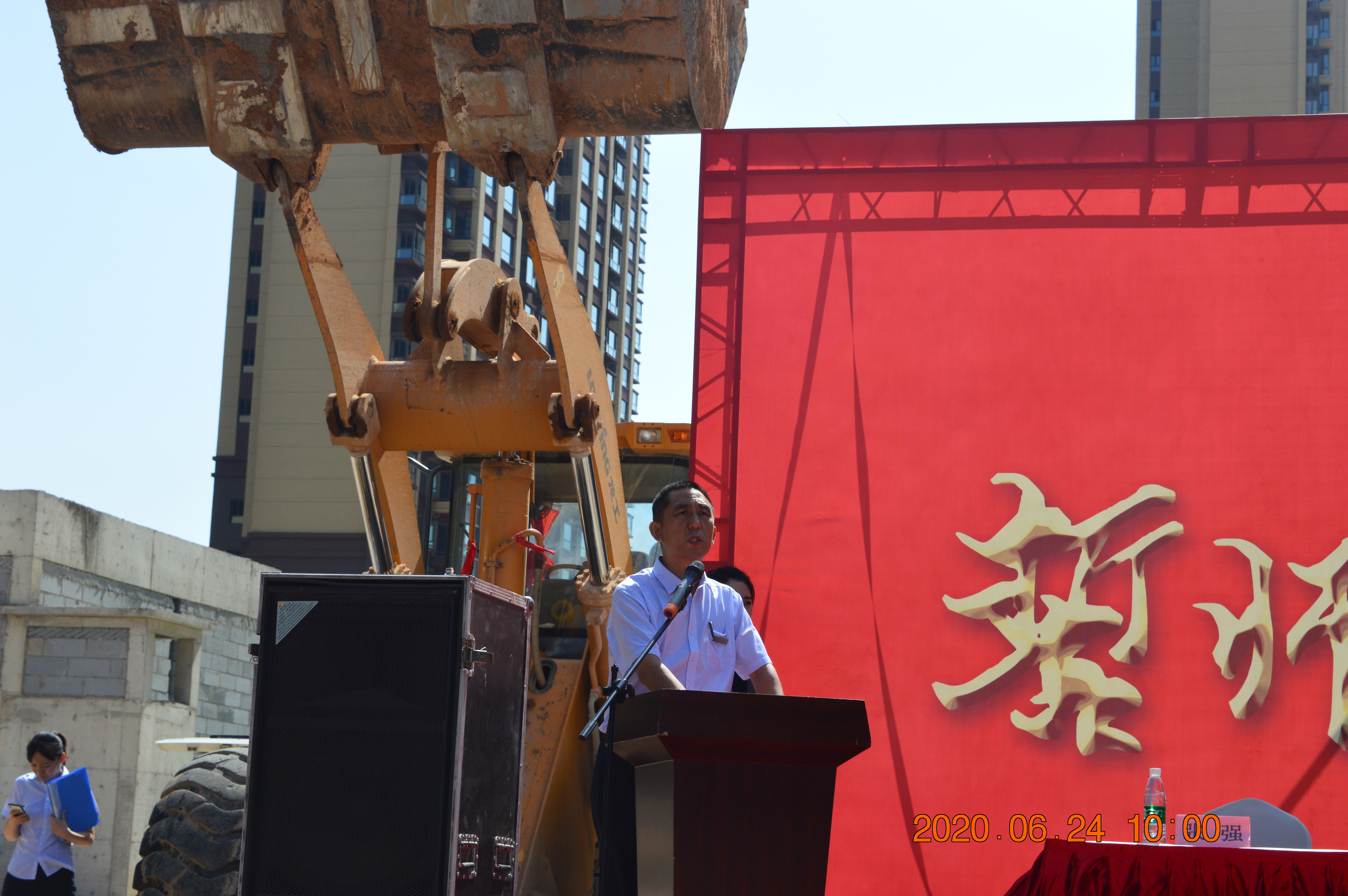 觀摩結(jié)束,全體人員行至主會場,只見主席臺上“誓師戰(zhàn)百日、交房倒計時”鎏金大字磅礴而現(xiàn),兩側(cè)裝載機猶如雄獅俯臥、旌旗招展颯颯威武!全體人員就位,工程百日會戰(zhàn)誓師大會正式拉開帷幕!