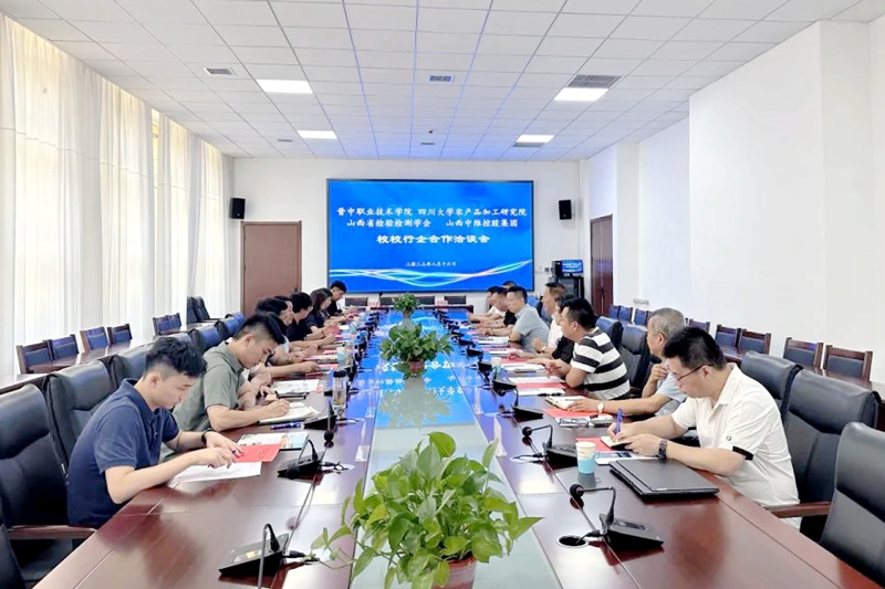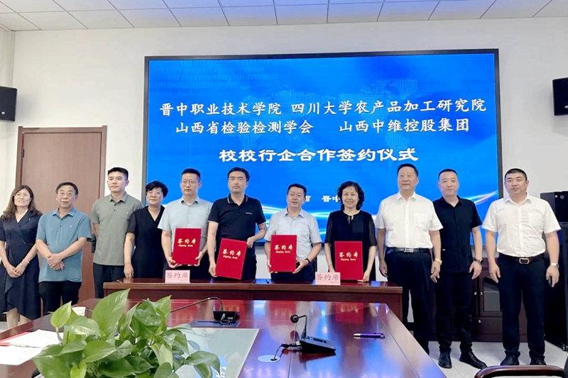 2023年8月18日,晉中職業(yè)技術(shù)學(xué)院、四川大學(xué)農(nóng)產(chǎn)品加工研究院、山西省檢驗(yàn)檢測(cè)學(xué)會(huì)、中維控股集團(tuán)“校校行企”合作洽談會(huì)議暨共建“食品產(chǎn)業(yè)學(xué)院”合作簽約儀式在晉中職業(yè)技術(shù)學(xué)院行政樓舉行。晉中職業(yè)技術(shù)學(xué)院院長雒衛(wèi)廷、四川大學(xué)農(nóng)產(chǎn)品加工研究院常務(wù)副院長趙志峰、山西省檢驗(yàn)檢測(cè)學(xué)會(huì)副會(huì)長張紅、中維控股集團(tuán)董事長郭秀忠等領(lǐng)導(dǎo)出席,與會(huì)的還有各單位相關(guān)負(fù)責(zé)同志。